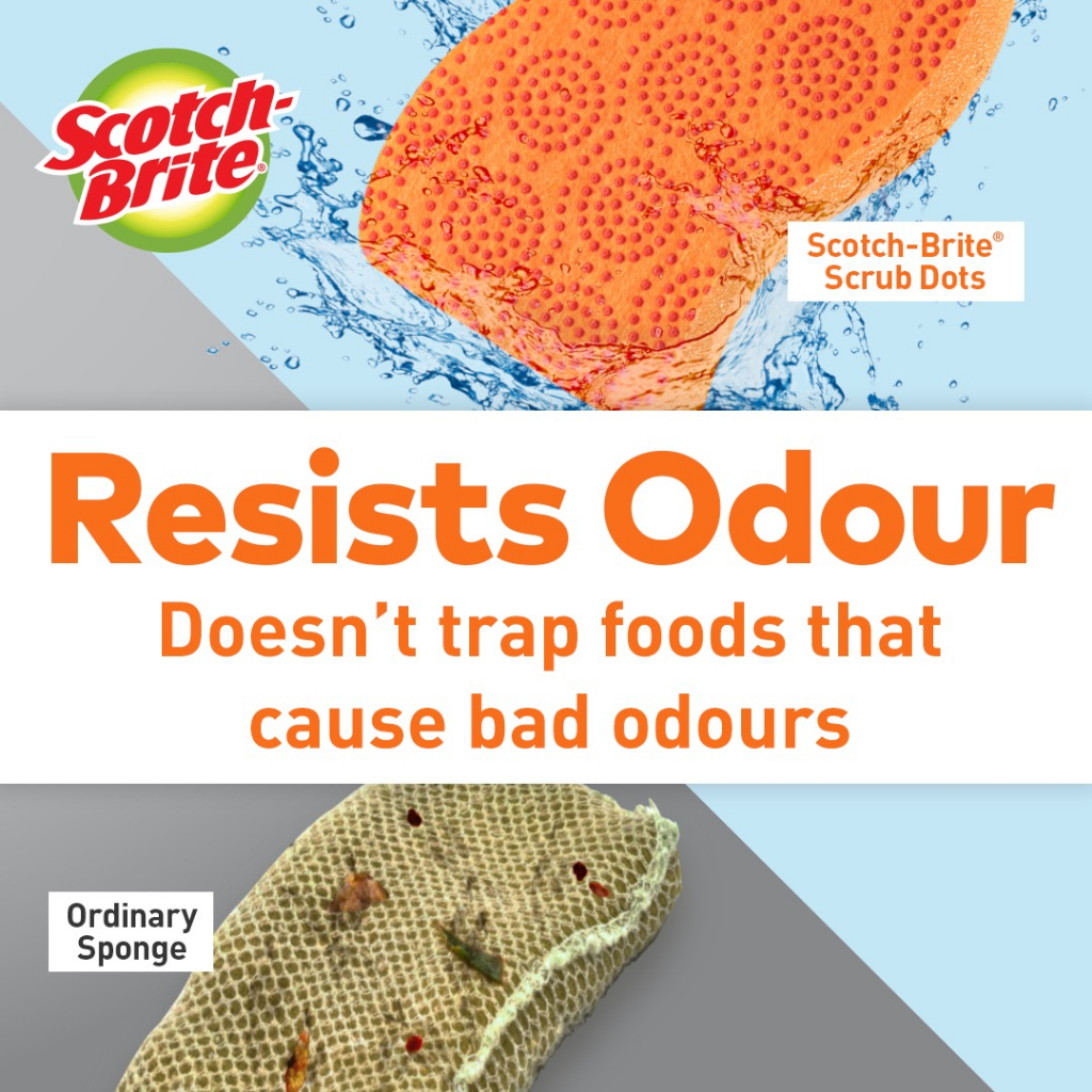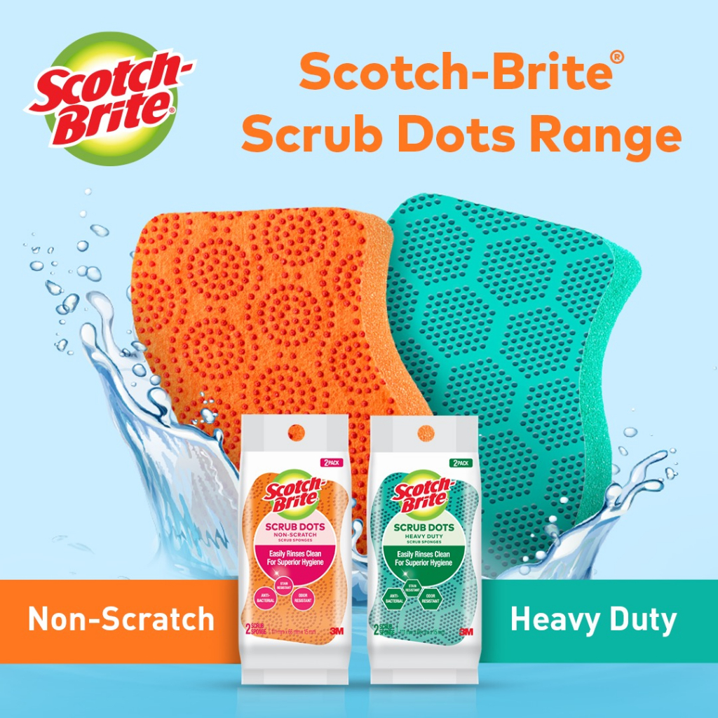 (GWP) 3M Scotch Brite Scrub Dots Non Scratch Anti Bacterial Scrub Sponges, 1/Pack