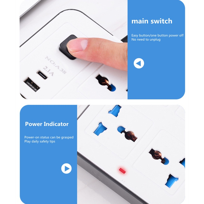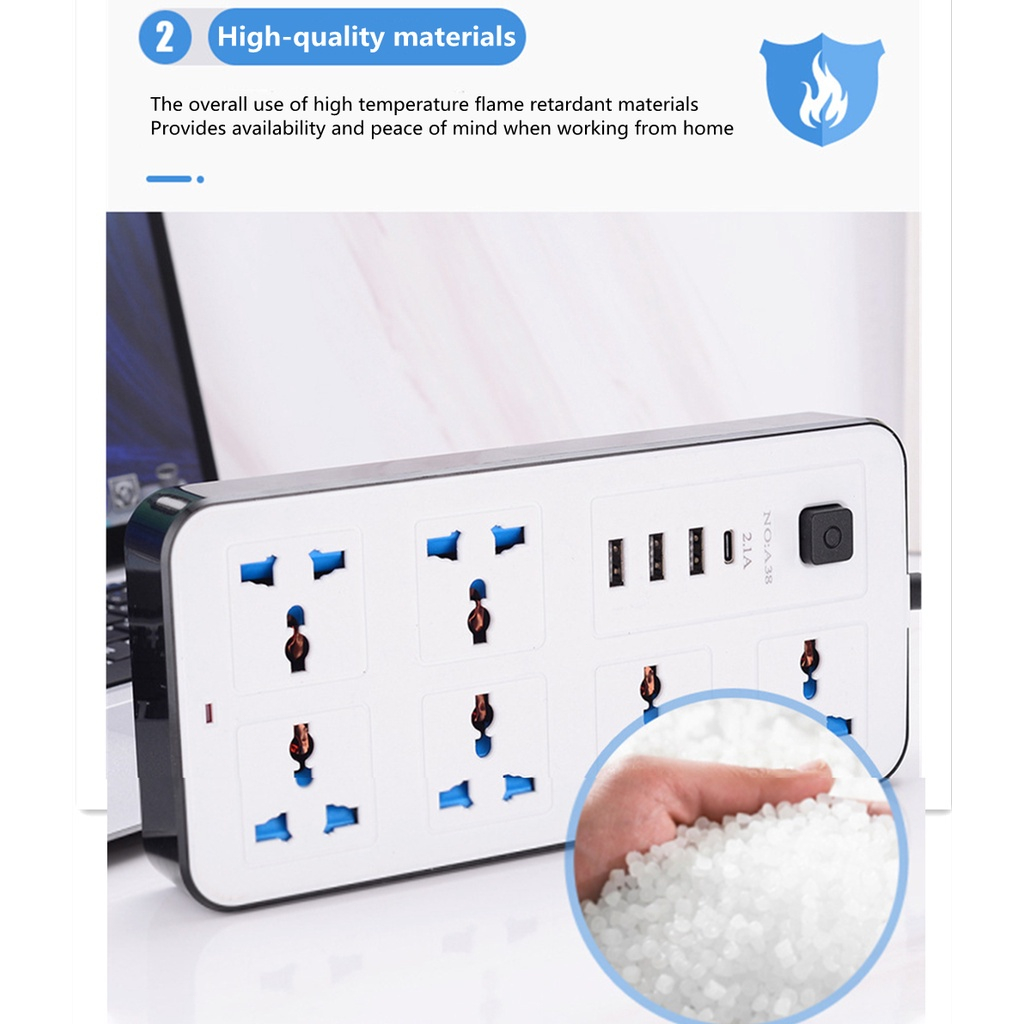 ?Bundle of 2?Power Socket Multifunctional With USB Pd Port, Fast Charging Extension Cable, Power Adapter A37