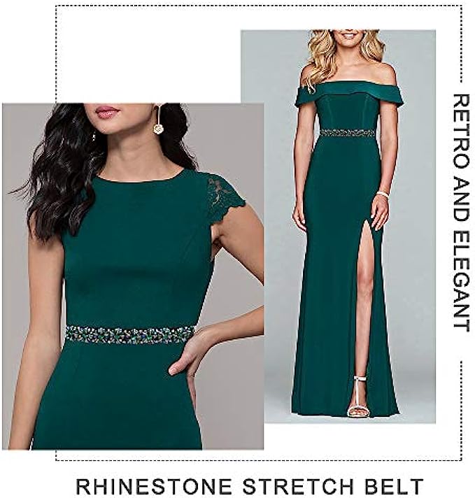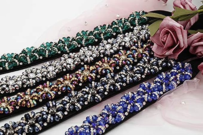 Dorchid Women Rhinstone Belt Skinny Beaded Crystal Waistband Elastic Belts 7 Colors