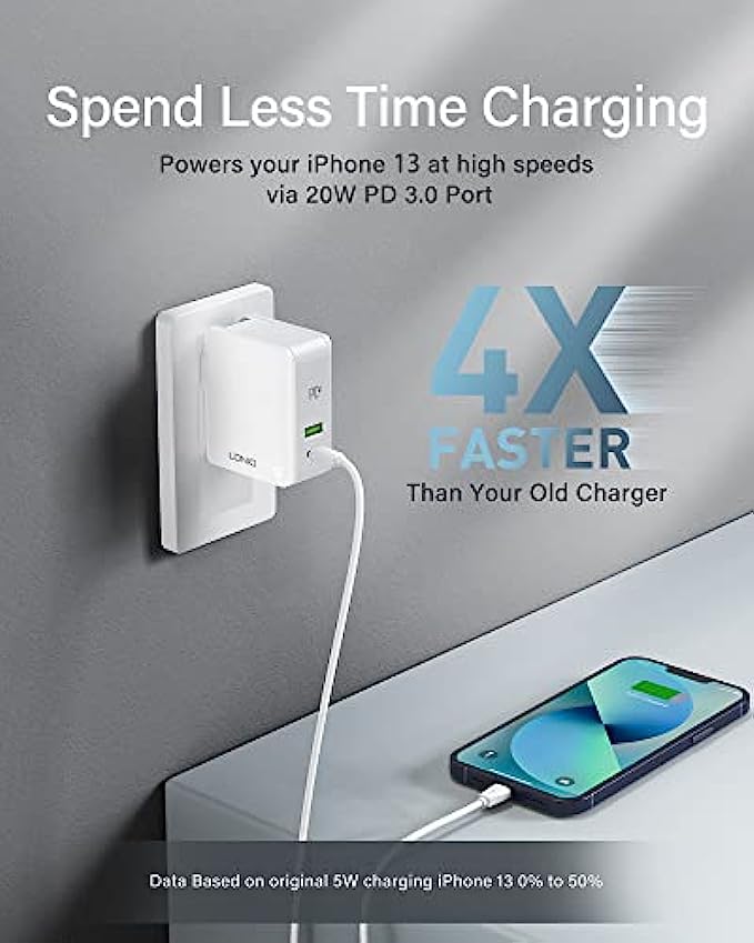 • 【Spend Less Time Charging】Charger block equipped with Power Delivery Fast Charging, specially designed for iPhone. 20W USB-C port charges iPhone 13 up to 58% in just 30 mins. Compared with an original 5W charger, the charging speed of this USB c charger can reach up to 4X faster.