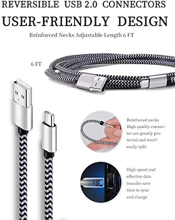 • 【Super Durable】Strong fiber, the most flexible, powerful and durable material, makes tensile force increased by 200%. Can bear 8000+ bending test. Premium Aluminum housing makes the cable more durable,and the Nylon Braided C-type cable increases the durability without tangle.