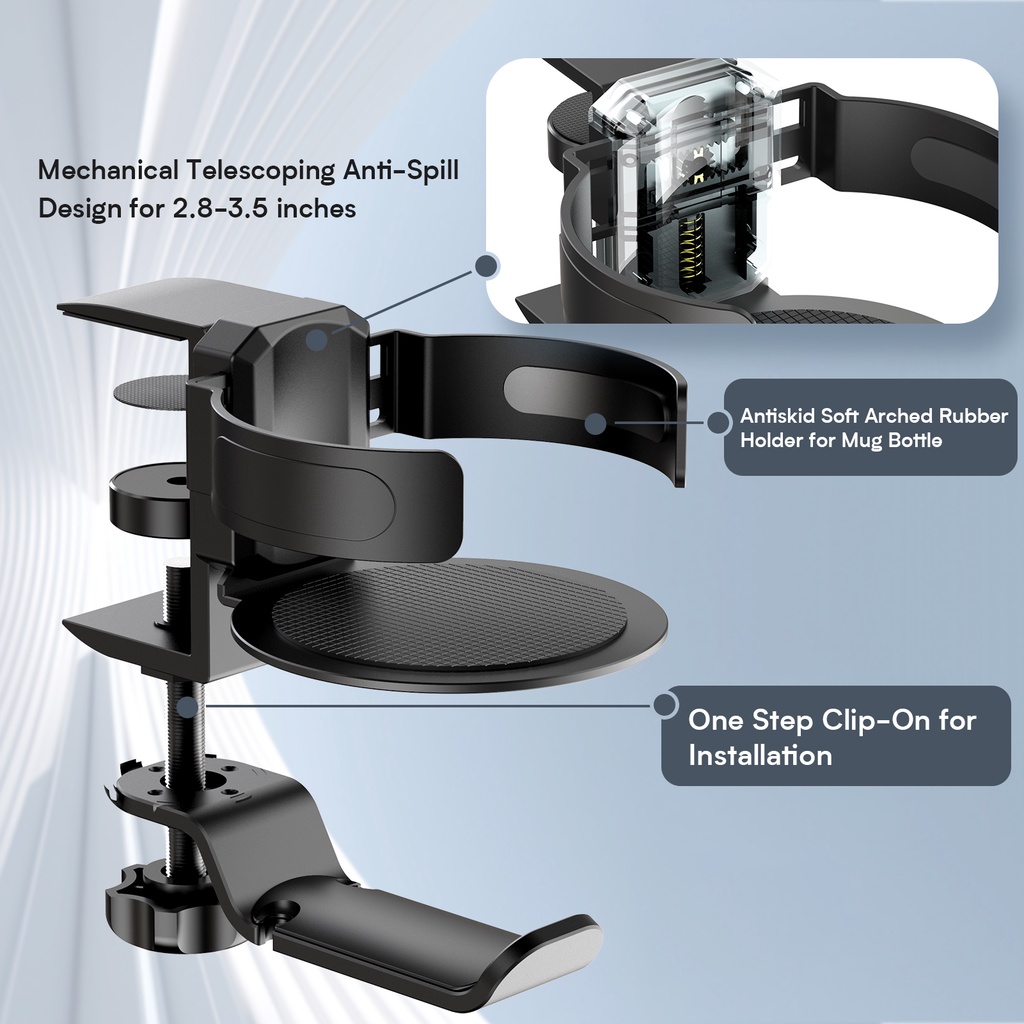 360 Aluminum Alloy Metal Gaming Display Under Desk Table Drink Cup Headphone Headphone Hook Bracket Installation