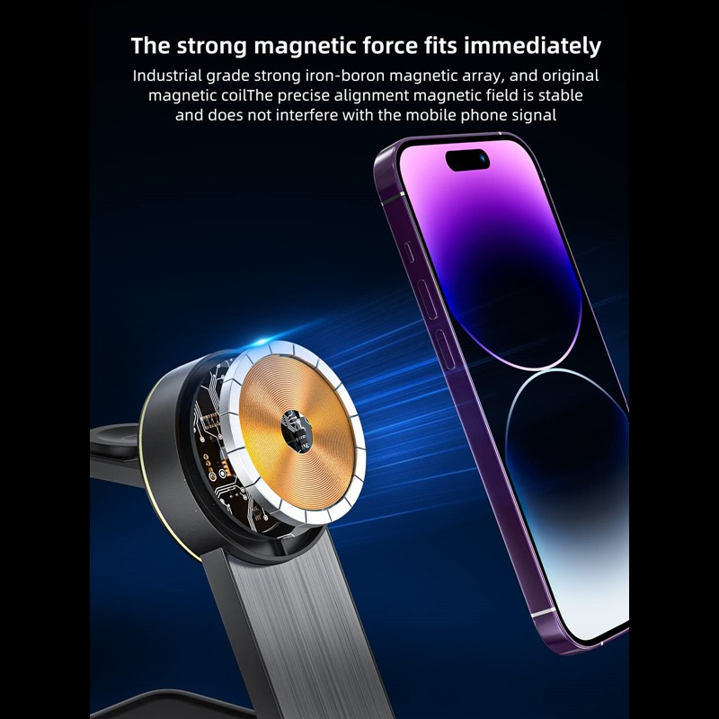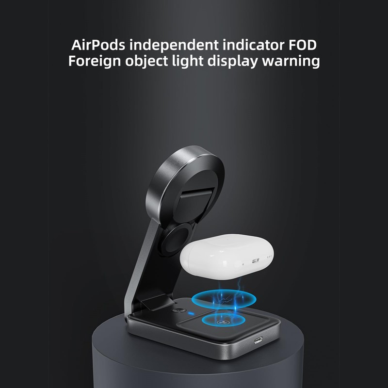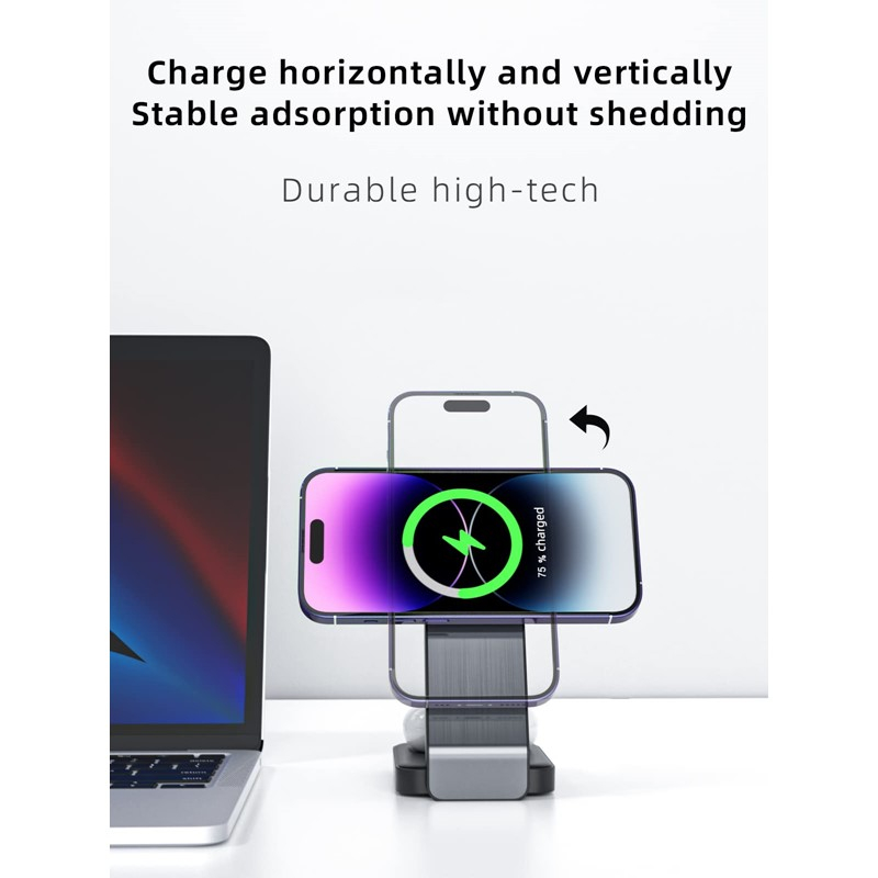 MTech MagTri 3-in-1 Magnetic Wireless Charger for Smartphones, Wireless Earbuds, and Smartwatches