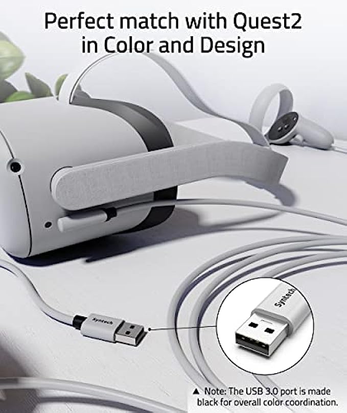 Compatible with Quest2 Accessories: Syntech link cable connects Quest2 to a gaming PC so that you can play all Rift apps and Steam VR games, providing perfect PC VR experience. The color and design of the cable match perfectly with the Quest2 headset.