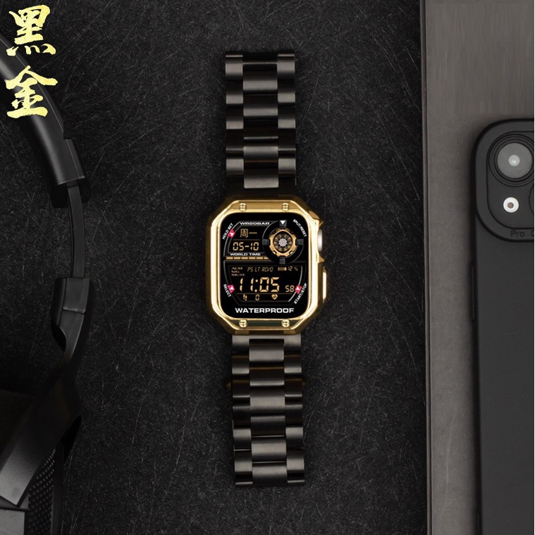 Looks good & feels good. This came with the watch tool for strap adjustment which was easy to do. The watch bracelet is alot wider than i expected & has some weight to it which i like. The watch case is silicone material. It might affect your screen protector if you are using one.