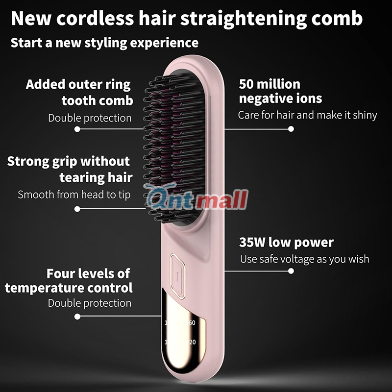 ?SG? Portable Cordless Hair Straightener Wireless Straightening Comb Negative Ion Hair Brush Curler for Travel 无线直发梳